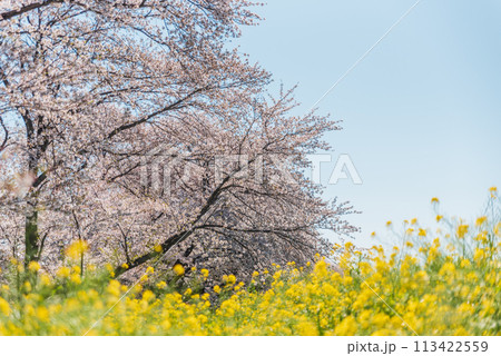 《埼玉縣》盛開的櫻花和油菜花・春天的權現堂 Tsutsumi