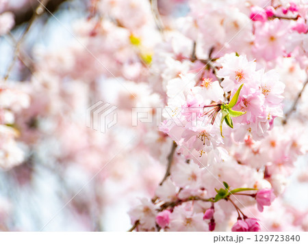 優雅盛開的垂枝櫻花在春日陽光下閃閃發光