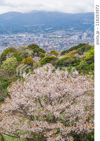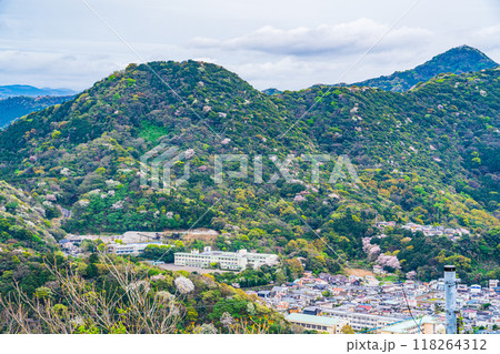 [靜岡縣]從鹿貫山眺望三島的街道,櫻花盛開