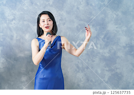 圖:一位夏季戶外活動的女主持人雙手交叉放在身前