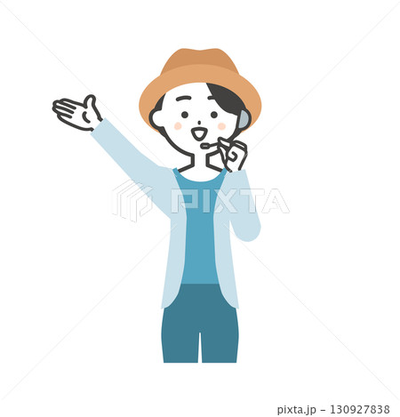 夏季戶外活動女主持人眨眼並向上指的插圖
