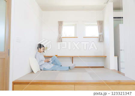 一位女士坐在榻榻米上