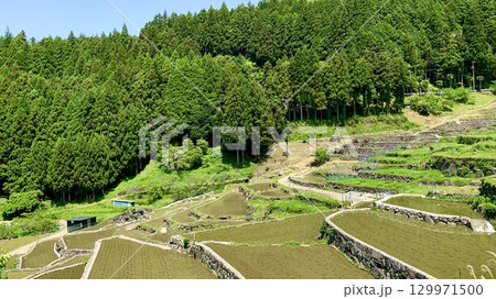 水稻種植後的梯田[四谷梯田/愛知縣新城市]