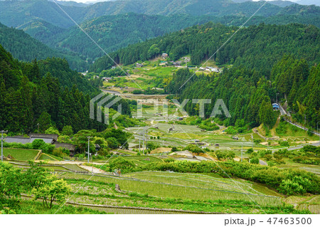 水稻種植後的梯田[四谷梯田/愛知縣新城市]