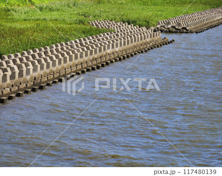 京都市伏見區,三須新井堰流出的水流湍急,匯入宇治川。