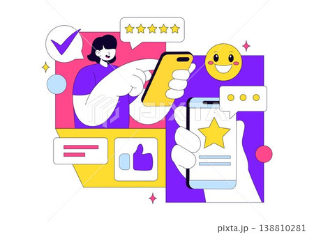 Customer review rating or evaluation. People give feedback. Client choice. Business satisfaction support. User experience or satisfaction, opinion for product or services