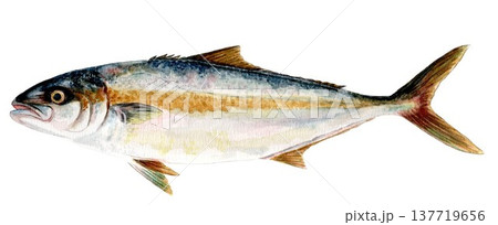 黃尾鰤魚手繪水彩畫