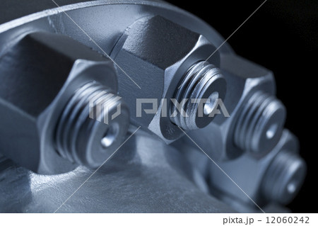 focus on center. black screws texture background closeup, modern metal mix diversity