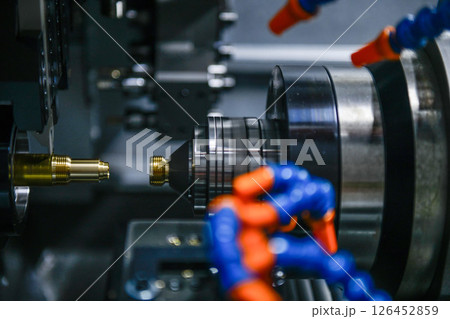 The CNC lathe machine in metal working process.