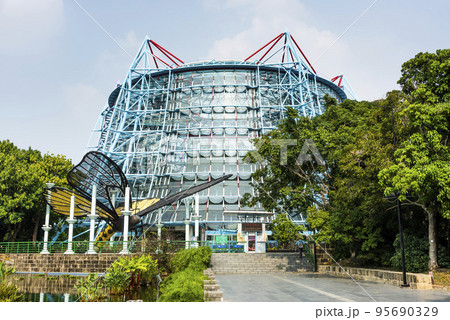 Low angle view of the Botanical Garden of National Museum of Natural Science in Taichung, Taiwan. Owns the largest tropical rainforest greenhouse in Taiwan.