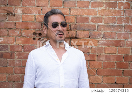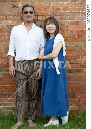 一對中年夫婦穿過愛知縣半田地區的半田紅磚建築(Kabuto啤酒舊址)