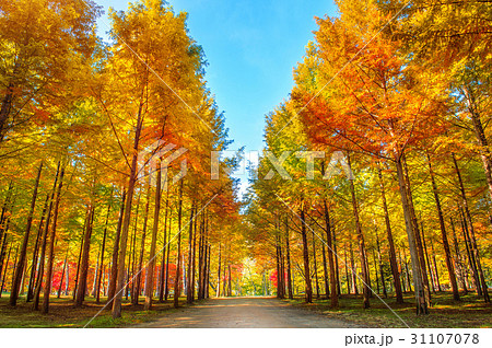 Sunrise Autumn at Nami island ,Seoul Korea.