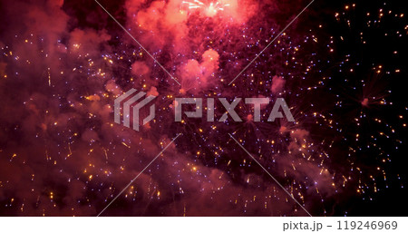 Red Firework celebrate anniversary happy new year 2024, 4th of july holiday festival. red firework in night time celebrate national holiday. Countdown to new year 2025 festival party time event