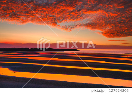 冬季瑪塔瑪海岸和日落,大分縣豐後高田市