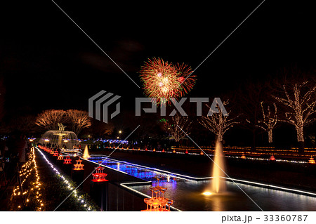 昭和紀念公園的銀杏樹秋葉被燈光點亮