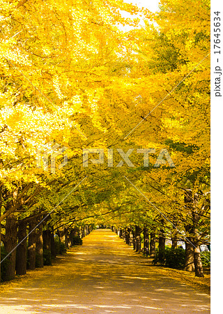 昭和紀念公園在黃色葉子的銀杏樹biloba