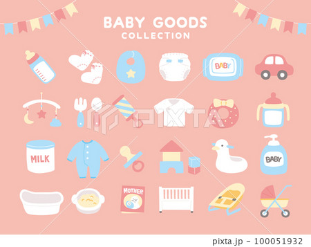 嬰兒嬰兒圖示設定線條簡單可愛插圖分娩育兒嬰兒粉紅色