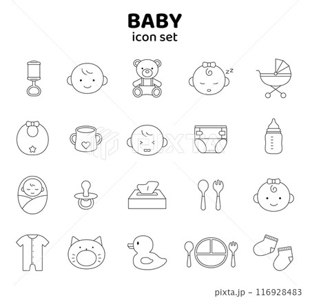 嬰兒嬰兒圖示設定線條簡單可愛插圖分娩育兒嬰兒黑白