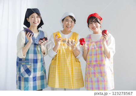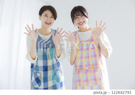 年輕女子穿著圍裙