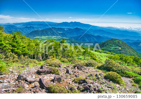 從栃木縣日光市霧降高原的登山道上眺望圓山和雲海