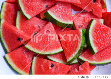 Watermelon slice on background, Closeup pile of sweet watermelon slices pieces fresh watermelon tropical summer fruit