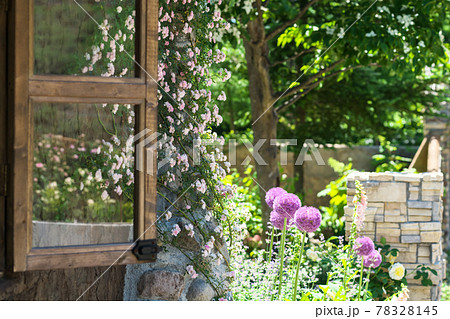 窗台上玫瑰盛開,園中圓潤可愛的花朵盛開。