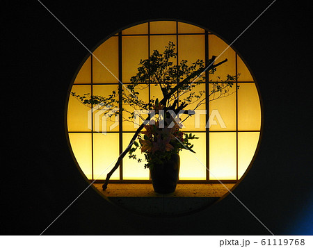 日式框架:日式框架,圓窗,日式房間,日式房屋,月亮植物,南天,秋葉,櫻花,牡丹,松木,滿月