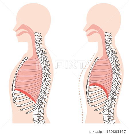 腹式呼吸人與橫膈膜和肺特徵