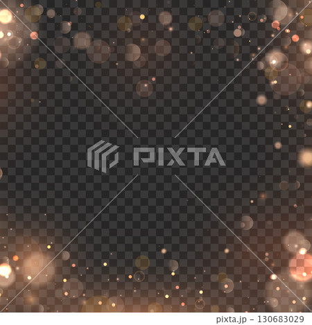 Festive golden bokeh lights and sparkles frame overlay effect. Vector