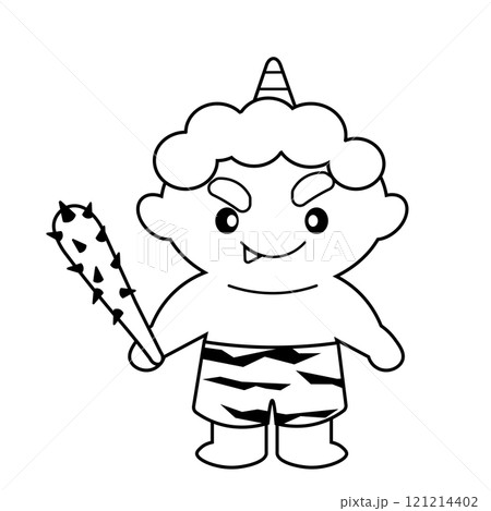 拿著金屬棒的有角惡魔的線條畫插圖