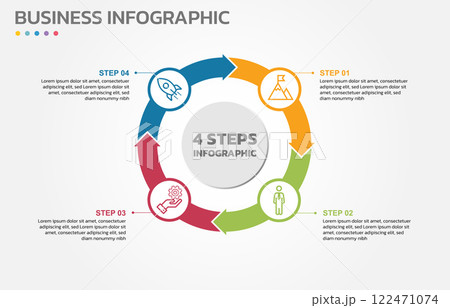 Visual data presentation. Cycle diagram with 4 options. Pie Chart Circle infographic template with 4 steps, options, parts, segments. Business concept. Marketing infographic vector illustration.