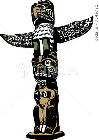 Traditional religious totem pole with decorated tribal masks and eagle vector icon, Aztecs Mayans native ethnic culture
