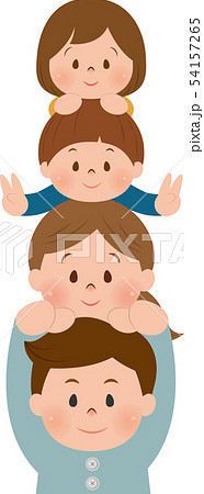 三個精力充沛的女孩像圖騰柱一樣快樂地垂直重疊,擺出可愛的姿勢。