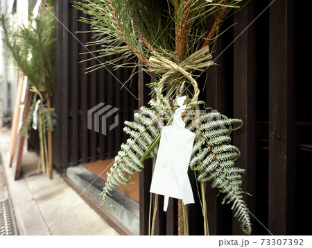 橫濱市神奈川區的本覺寺(大門、寺廟標誌和日本杉樹)