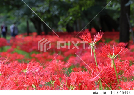 開車前往盛開的紅花彼岸花-巾著田的遊客(埼玉縣日高市)