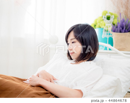 女性之美形象:憂鬱、頭痛、低頭、倦怠的表情與思考的形象。