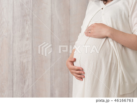 孕婦開心地撫摸大肚子的插圖(上半身)
