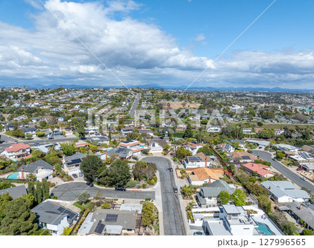 View from above of residential houses in living area in North Port, FL. American dream homes as example of real estate development in US suburbs