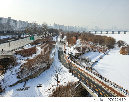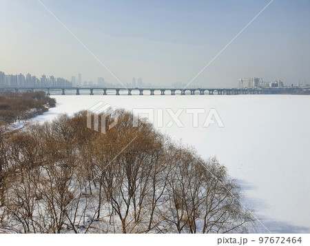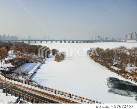 首爾結冰的漢江上積雪(冬景)
