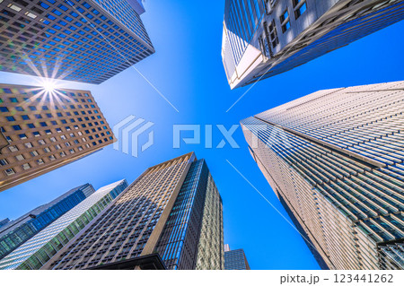3 月 21 日,日本東京城市景觀,俯瞰大手町的摩天大樓