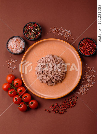 Tuna, canned fish in a can and on a plate for making sandwiches and other food. Canned tuna