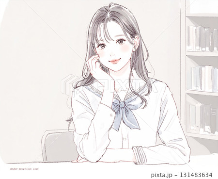 水彩/手繪風格穿制服學習的女學生,女人/女孩的插畫素材