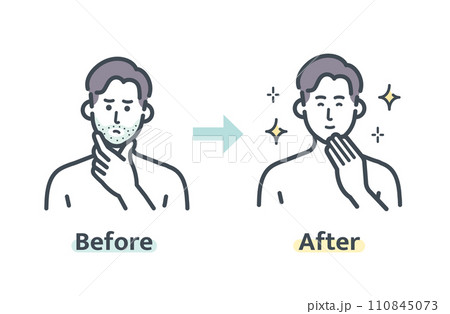 Close up photo of a man's face before and after shaving. a young man with a beard. Comparison of a man's face with a beard and without a beard. use of aftershave cream.