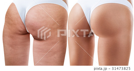 Female buttocks before and after cellulitis.