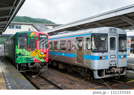 停在山口縣美因市JR西南大峰站月台的電車