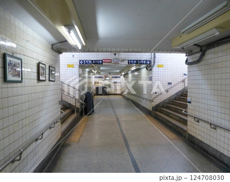 台灣台南-06/04/2013:台鐵地面台南車站往月台的地下道階梯多