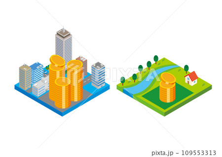 城市發展、城鎮發展、土地價格上漲矢量圖標說明