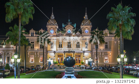 Grand Casino in Monte Carlo night timelapse, Monaco. historical building