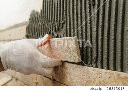 Installing the tiles on the wall.
