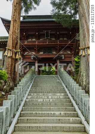 日本長野縣長野市戶隱神社的大鳥居和內殿參道